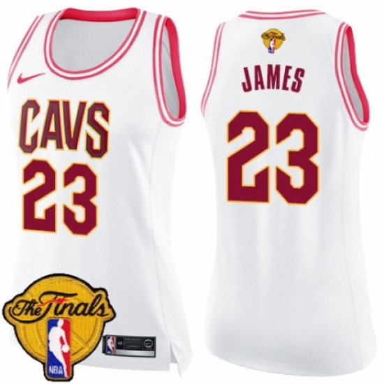 Women's Nike Cleveland Cavaliers #23 LeBron James Swingman White/Pink Fashion 2018 NBA Finals Bound NBA Jersey