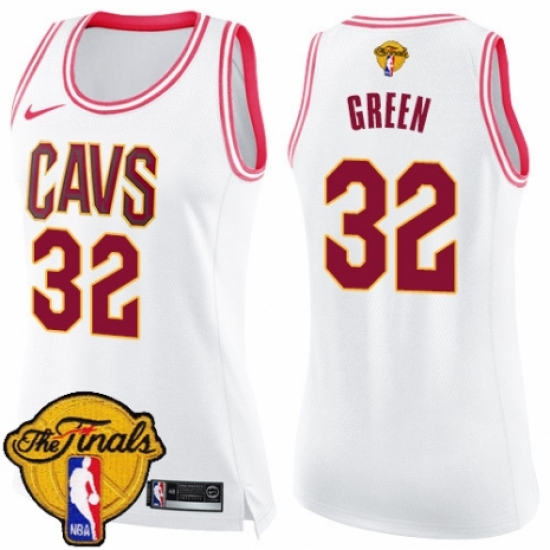 >Women's Nike Cleveland Cavaliers #32 Jeff Green Swingman White/Pink Fashion 2018 NBA Finals Bound NBA Jersey