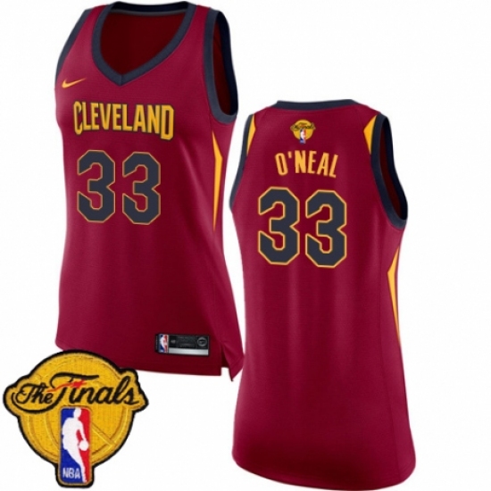Women's Nike Cleveland Cavaliers #33 Shaquille O'Neal Authentic Maroon 2018 NBA Finals Bound NBA Jersey - Icon Edition