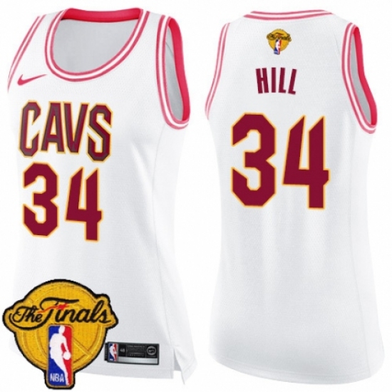 >Women's Nike Cleveland Cavaliers #34 Tyrone Hill Swingman White/Pink Fashion 2018 NBA Finals Bound NBA Jersey