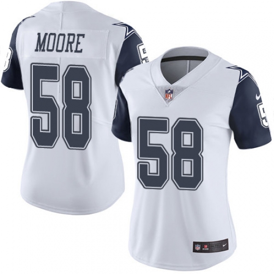 Home>NFL>Dallas Cowboys>Damontre Moore>Women's Nike Dallas Cowboys #58 Damontre Moore Limited White Rush Vapor Untouchable NFL Jersey