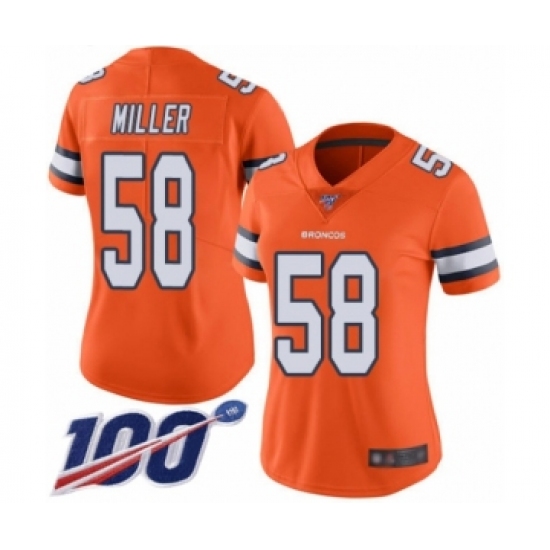 Women's Nike Denver Broncos #58 Von Miller Limited Orange Rush Vapor Untouchable 100th Season NFL Jersey