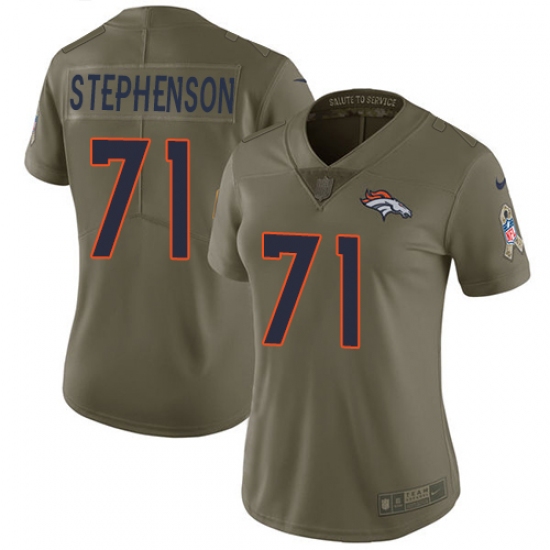Home>NFL>Denver Broncos>Donald Stephenson>Women's Nike Denver Broncos #71 Donald Stephenson Limited Olive 2017 Salute to Service NFL Jersey