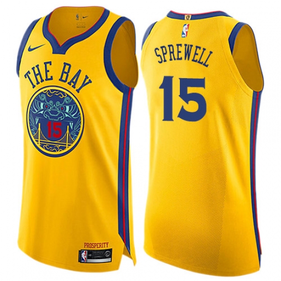 Women's Nike Golden State Warriors #15 Latrell Sprewell Swingman Gold NBA Jersey - City Edition
