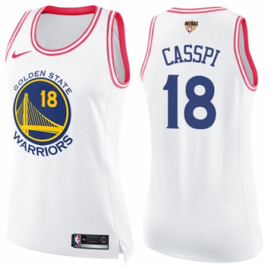 >Women's Nike Golden State Warriors #18 Omri Casspi Swingman White/Pink Fashion 2018 NBA Finals Bound NBA Jersey