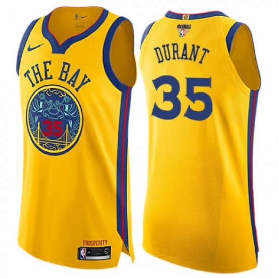 >Women's Nike Golden State Warriors #35 Kevin Durant Swingman Gold 2018 NBA Finals Bound NBA Jersey - City Edition