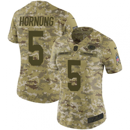 >Women's Nike Green Bay Packers #5 Paul Hornung Limited Camo 2018 Salute to Service NFL Jersey