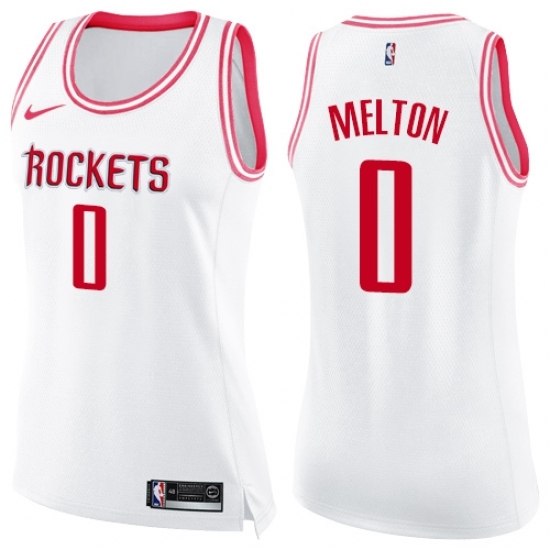 >Women's Nike Houston Rockets #0 De'Anthony Melton Swingman White Pink Fashion NBA Jersey
