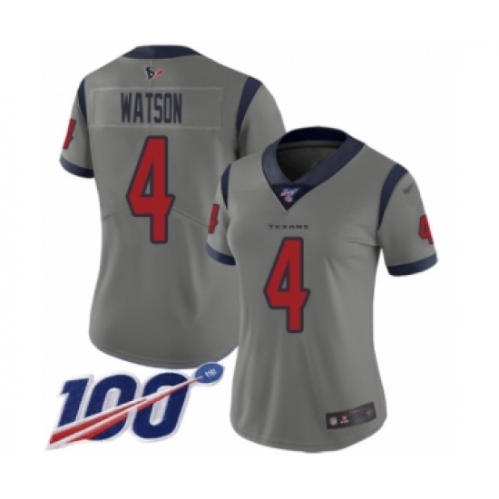 >Women's Nike Houston Texans #4 Deshaun Watson Limited Gray Inverted Legend 100th Season NFL Jersey