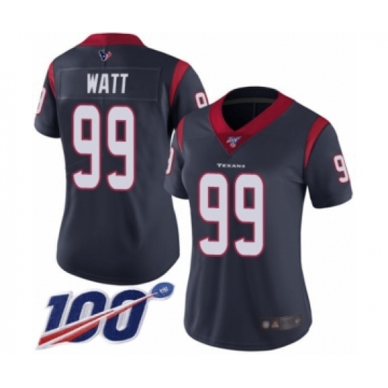 Women's Nike Houston Texans #99 J.J. Watt Navy Blue Team Color Vapor Untouchable Limited Player 100th Season NFL Jersey