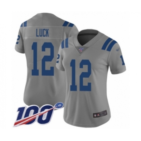 >Women's Nike Indianapolis Colts #12 Andrew Luck Limited Gray Inverted Legend 100th Season NFL Jersey