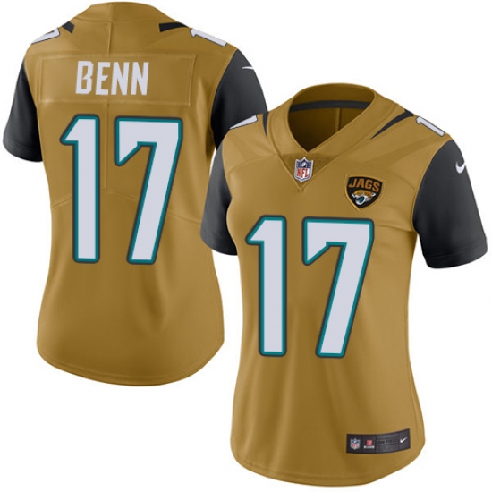 Home>NFL>Jacksonville Jaguars>Arrelious Benn>Women's Nike Jacksonville Jaguars #17 Arrelious Benn Limited Gold Rush Vapor Untouchable NFL Jersey
