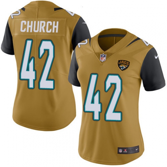 Home>NFL>Jacksonville Jaguars>Barry Church>Women's Nike Jacksonville Jaguars #42 Barry Church Limited Gold Rush Vapor Untouchable NFL Jersey