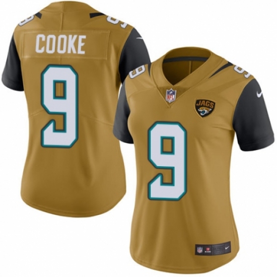 >Women's Nike Jacksonville Jaguars #9 Logan Cooke Limited Gold Rush Vapor Untouchable NFL Jersey