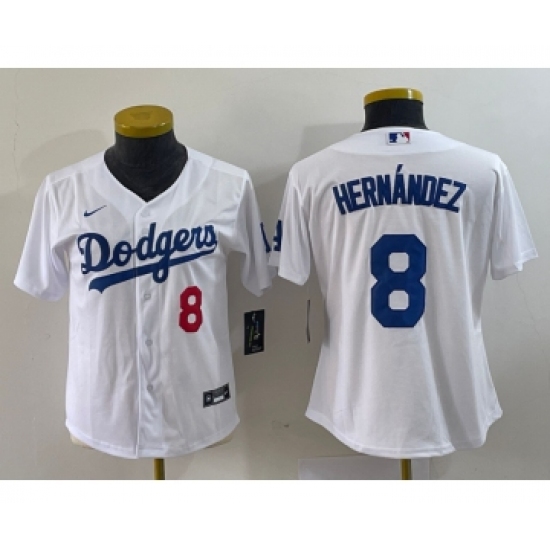 Women's Nike Los Angeles Dodgers #8 Kike Hernandez Number White Stitched Cool Base Jersey