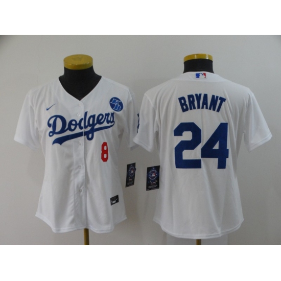 Women's Los Angeles Dodgers #24 Kobe Bryant White Pink With Limited Stitched Jersey