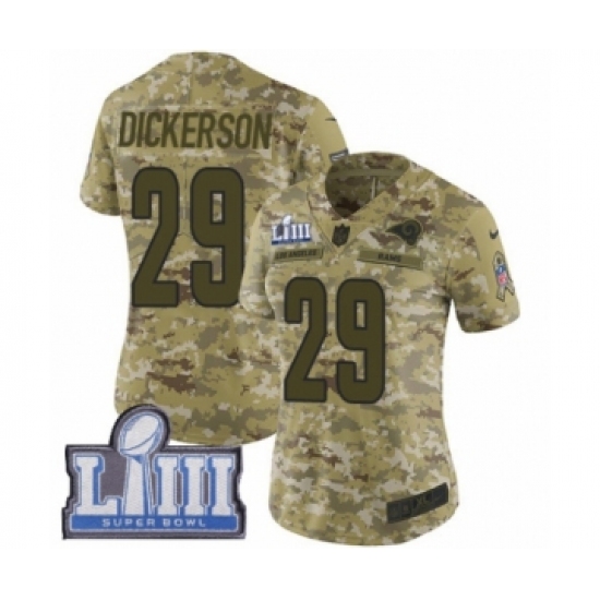 Women's Nike Los Angeles Rams #29 Eric Dickerson Limited Camo 2018 Salute to Service Super Bowl LIII Bound NFL Jersey