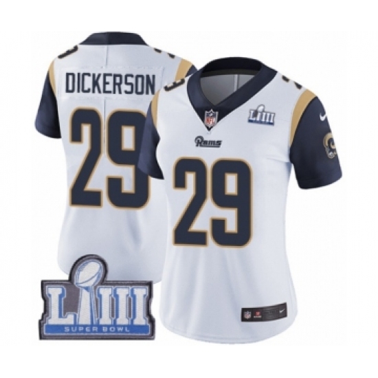 Women's Nike Los Angeles Rams #29 Eric Dickerson White Vapor Untouchable Limited Player Super Bowl LIII Bound NFL Jersey