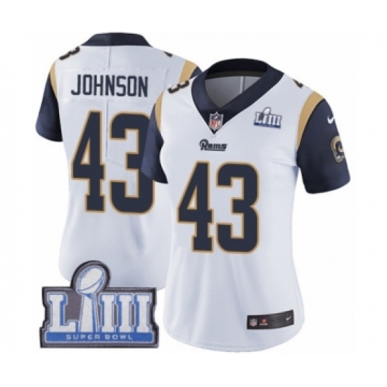 Women's Nike Los Angeles Rams #43 John Johnson White Vapor Untouchable Limited Player Super Bowl LIII Bound NFL Jersey