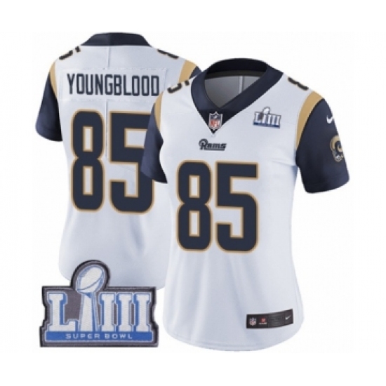Women's Nike Los Angeles Rams #85 Jack Youngblood White Vapor Untouchable Limited Player Super Bowl LIII Bound NFL Jersey
