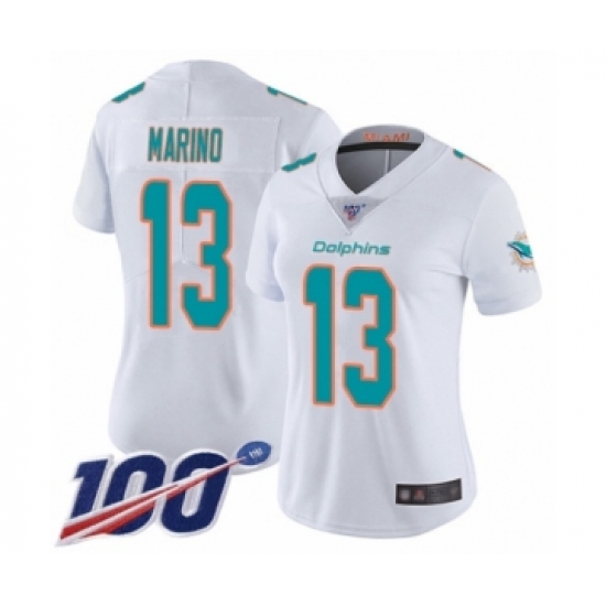 Women's Nike Miami Dolphins #13 Dan Marino White Vapor Untouchable Limited Player 100th Season NFL Jersey