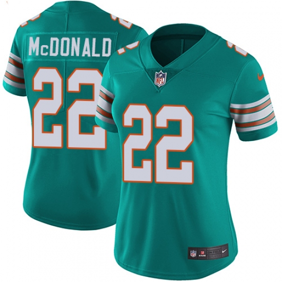 Home>NFL>Miami Dolphins>T.J. McDonald>Women's Nike Miami Dolphins #22 T.J. McDonald Aqua Green Alternate Vapor Untouchable Limited Player NFL Jersey