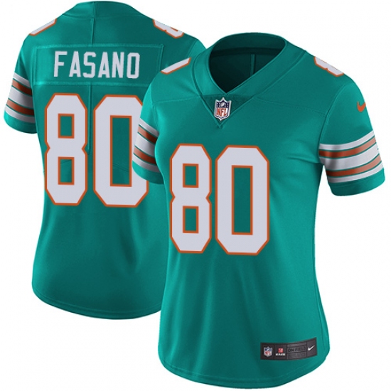 Home>NFL>Miami Dolphins>Anthony Fasano>Women's Nike Miami Dolphins #80 Anthony Fasano Aqua Green Alternate Vapor Untouchable Limited Player NFL Jersey