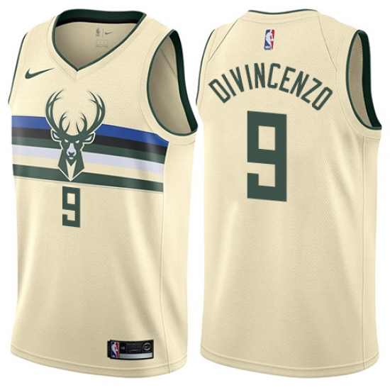 >Women's Nike Milwaukee Bucks #9 Donte DiVincenzo Swingman Cream NBA Jersey - City Edition