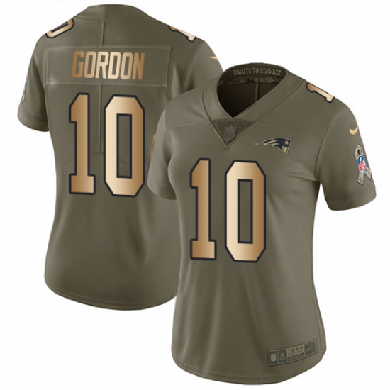Men's Nike New England Patriots #10 Josh Gordon Limited Olive 2017 Salute to Service Super Bowl LIII Bound NFL Jersey