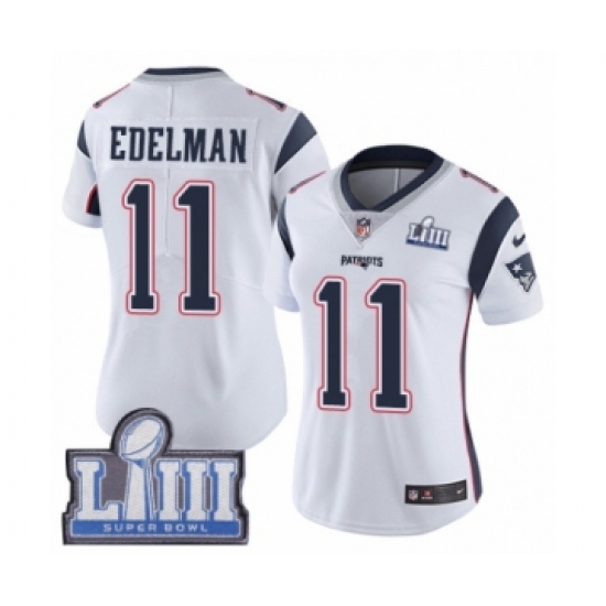 Women's Nike New England Patriots #11 Julian Edelman White Vapor Untouchable Limited Player Super Bowl LIII Bound NFL Jersey