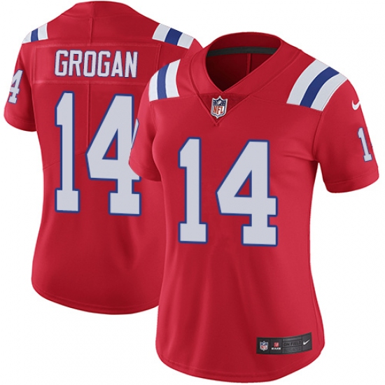 Home>NFL>New England Patriots>Steve Grogan>Women's Nike New England Patriots #14 Steve Grogan Red Alternate Vapor Untouchable Limited Player NFL Jersey