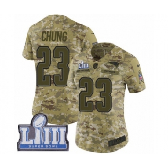 >Women's Nike New England Patriots #23 Patrick Chung Limited Camo 2018 Salute to Service Super Bowl LIII Bound NFL Jersey