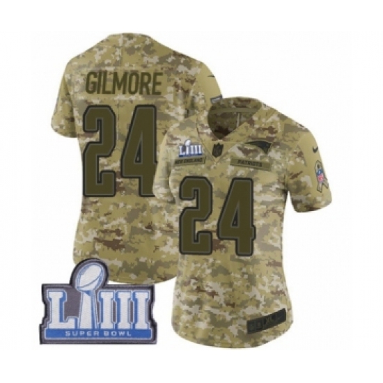 >Women's Nike New England Patriots #24 Stephon Gilmore Limited Camo 2018 Salute to Service Super Bowl LIII Bound NFL Jersey