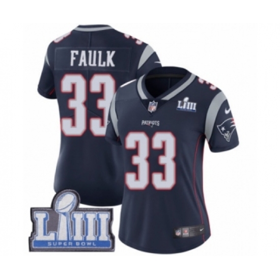 >Women's Nike New England Patriots #33 Kevin Faulk Navy Blue Team Color Vapor Untouchable Limited Player Super Bowl LIII Bound NFL Jersey