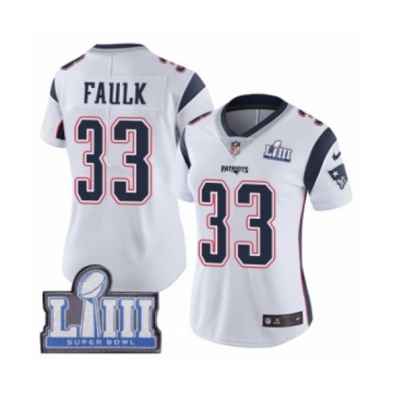 >Women's Nike New England Patriots #33 Kevin Faulk White Vapor Untouchable Limited Player Super Bowl LIII Bound NFL Jersey