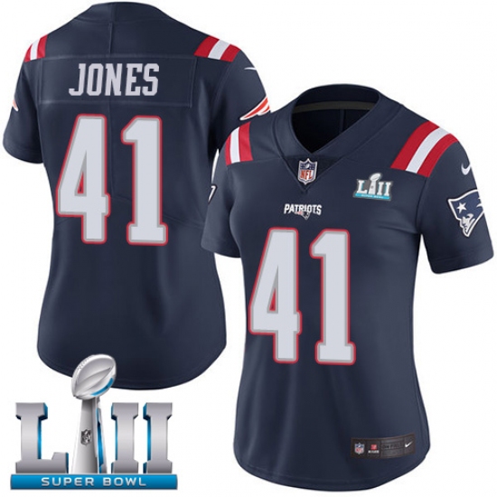 Women's Nike New England Patriots #41 Cyrus Jones Limited Navy Blue Rush Vapor Untouchable Super Bowl LII NFL Jersey