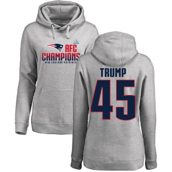 Women's Nike New England Patriots #45 Donald Trump Heather Gray 2017 AFC Champions Pullover Hoodie