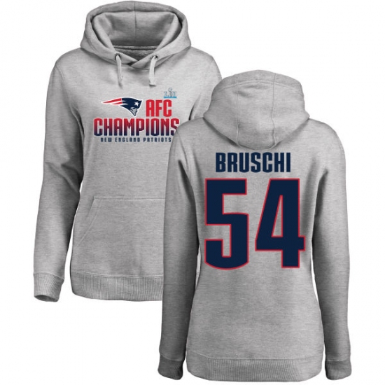 >Women's Nike New England Patriots #54 Tedy Bruschi Heather Gray 2017 AFC Champions Pullover Hoodie