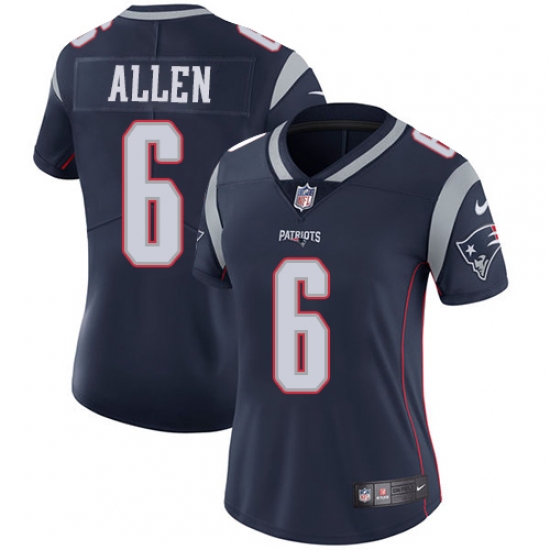 Women's Nike New England Patriots #6 Ryan Allen Navy Blue Team Color Vapor Untouchable Limited Player NFL Jersey