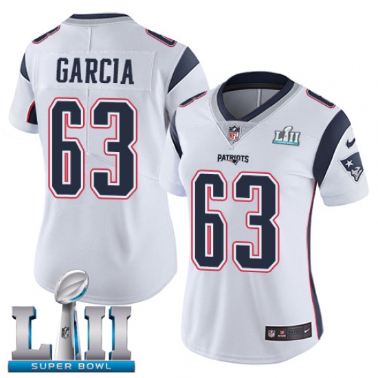 Women's Nike New England Patriots #63 Antonio Garcia White Vapor Untouchable Limited Player Super Bowl LII NFL Jersey