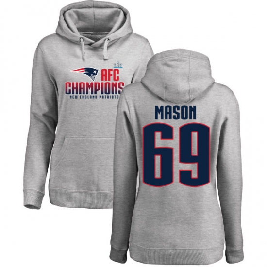 Women's Nike New England Patriots #69 Shaq Mason Heather Gray 2017 AFC Champions Pullover Hoodie