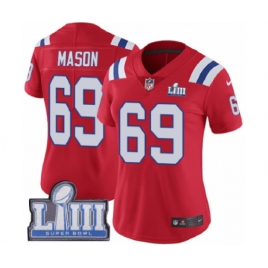 Women's Nike New England Patriots #69 Shaq Mason Red Alternate Vapor Untouchable Limited Player Super Bowl LIII Bound NFL Jersey