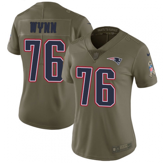 >Women's Nike New England Patriots #76 Isaiah Wynn Limited Olive 2017 Salute to Service NFL Jersey