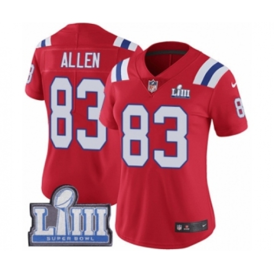 Women's Nike New England Patriots #83 Dwayne Allen Red Alternate Vapor Untouchable Limited Player Super Bowl LIII Bound NFL Jersey