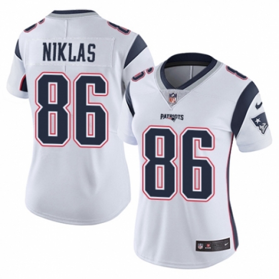 >Women's Nike New England Patriots #86 Troy Niklas White Vapor Untouchable Limited Player NFL Jersey