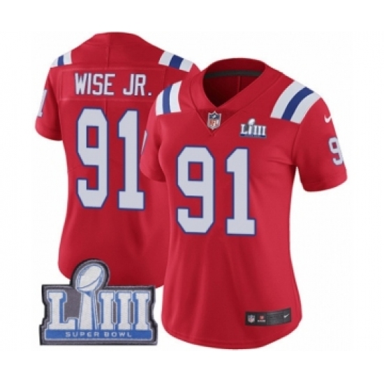 Women's Nike New England Patriots #91 Deatrich Wise Jr Red Alternate Vapor Untouchable Limited Player Super Bowl LIII Bound NFL Jersey