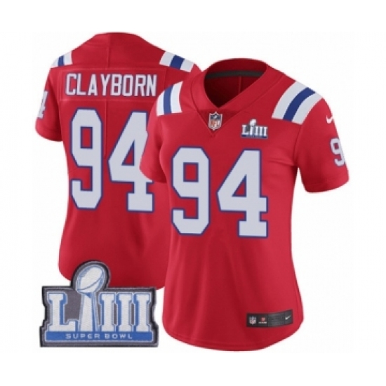 Women's Nike New England Patriots #94 Adrian Clayborn Red Alternate Vapor Untouchable Limited Player Super Bowl LIII Bound NFL Jersey