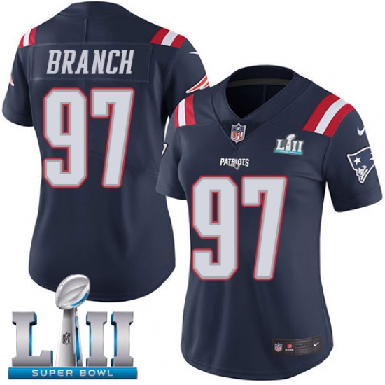 Home>NFL>New England Patriots>Alan Branch>Women's Nike New England Patriots #97 Alan Branch Limited Navy Blue Rush Vapor Untouchable Super Bowl LII NFL Jersey
