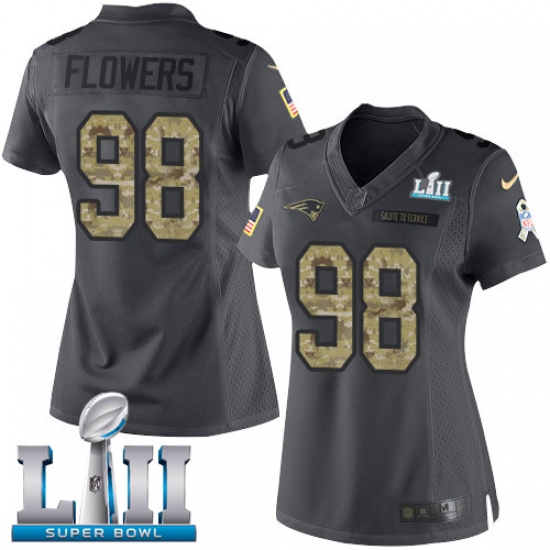 Home>NFL>New England Patriots>Trey Flowers>Women's Nike New England Patriots #98 Trey Flowers Limited Black 2016 Salute to Service Super Bowl LII NFL Jersey