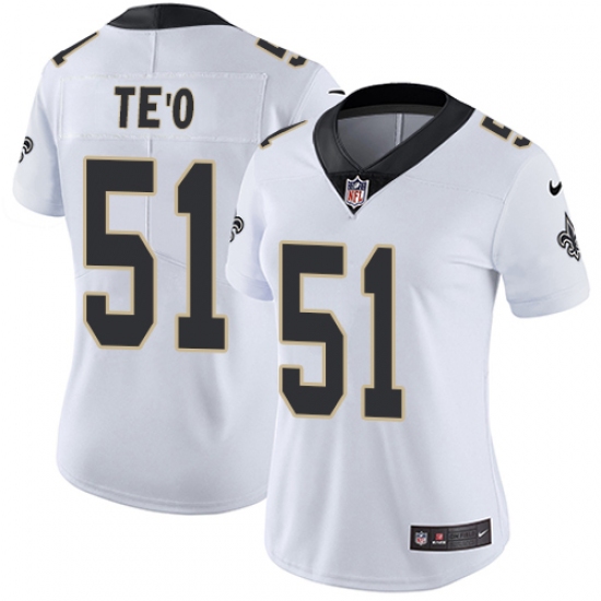Women's Nike New Orleans Saints #51 Manti Te'o White Vapor Untouchable Limited Player NFL Jersey